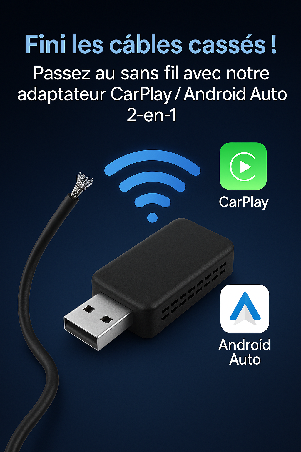 Notre adaptateur sans fil transforme instantanément votre voiture en un espace moderne, connecté, et surtout sans contrainte.