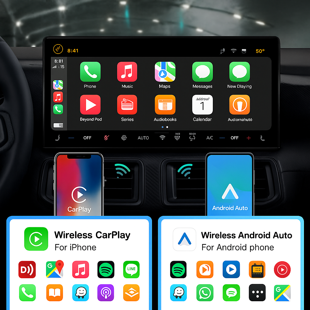 Connexion automatique sans câble à chaque démarrage, il fonctionne avec iPhone & Android (CarPlay & Android Auto)